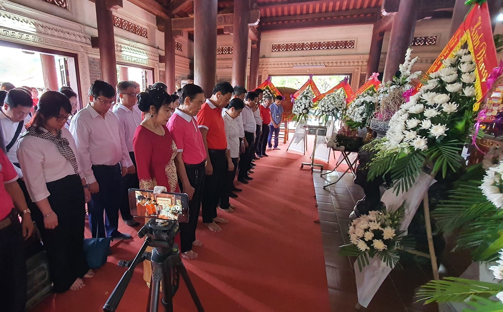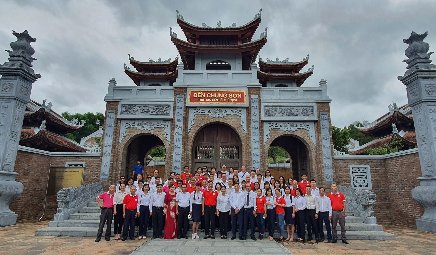 Đoàn chụp ảnh lưu niệm tại Đền Chung Sơn