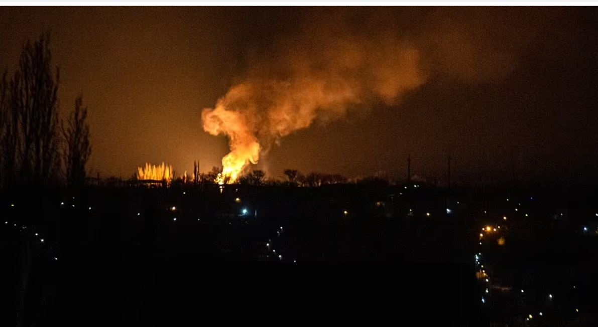 Ngọn lửa lớn bốc lên sau khi một đường ống dẫn khí đốt bị tấn công ở vùng Luhansk của Ukraine.