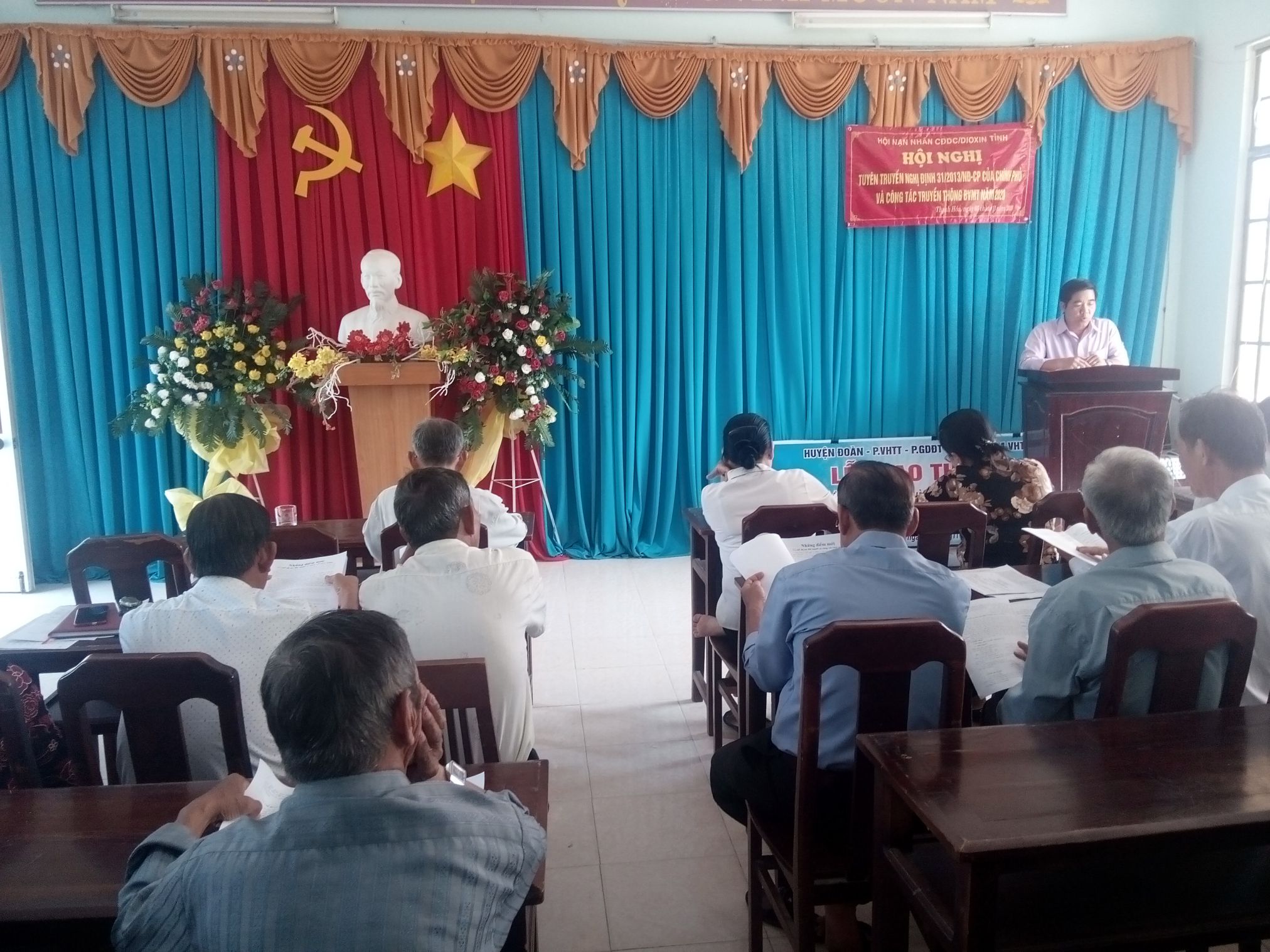 Thực hiện kế hoạch phối hợp giữa Hội NNCĐDC/dioxin tỉnh và Sở Lao động-Thương binh và Xã hội tỉnh Long An, sáng ngày 05/11/2020 tại huyện Thạnh Hóa, Hội NNCĐDC/dioxin tỉnh tổ chức hội nghị tập huấn Nghị định 31/2013/NĐ-CP ngày 09/4/2013 của Chính phủ “về việc qui định chi tiết, hướng dẫn thi hành một số điều của Pháp lệnh ưu đãi người có công với cách mạng” cho gần 40 đại biểu là cán bộ Hội cơ sở thuộc các huyện Thạnh Hóa, Châu Thành, Tân Trụ, Tân Thạnh và Bến Lức.