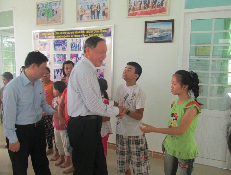 Thượng tướng Nguyễn Văn Rinh, Chủ tịch Hội NNCĐDC/dioxin Việt Nam thăm các em tại Trung tâm, cơ sở 3