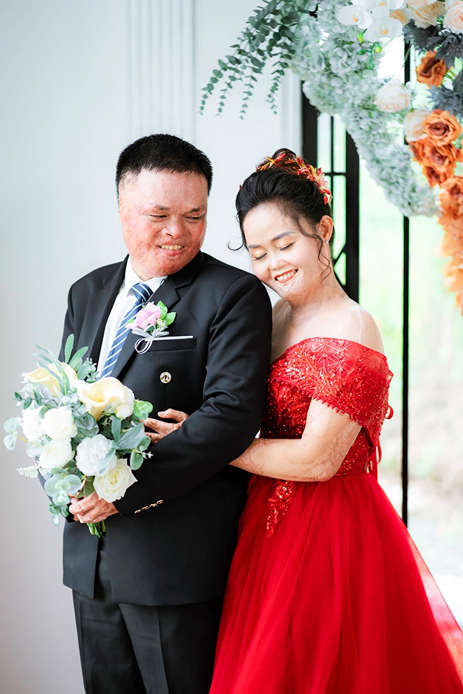 Đám cưới của chị Ngân với chồng được tổ chức giản dị, đơn sơ, không bày biện quá nhiều nhưng ấm cúng và tràn đầy tình cảm của người thân, bạn bè. Đặc biệt, có rất nhiều khách mời là người đồng cảnh ngộ từ mọi miền đất nước về chung vui và chúc phúc cho 2 vợ chồng.