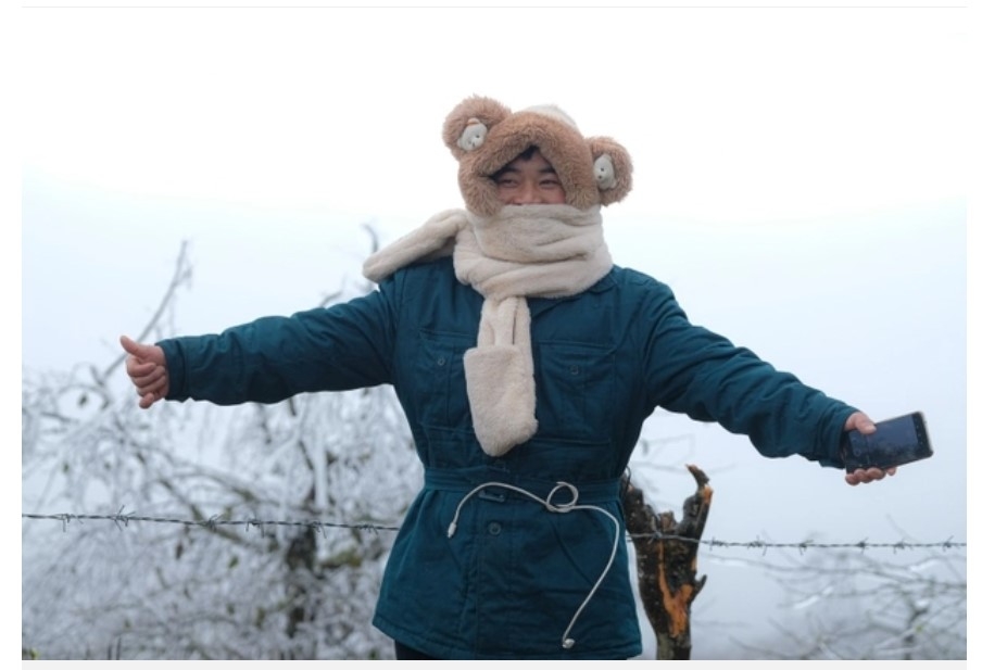 Ngày 21/2, nhiệt độ tại huyện Bát Xát (Lào Cai) xuống 0 độ C khiến băng tuyết xuất hiện dày đặc. (Ảnh: Đắc Huy).