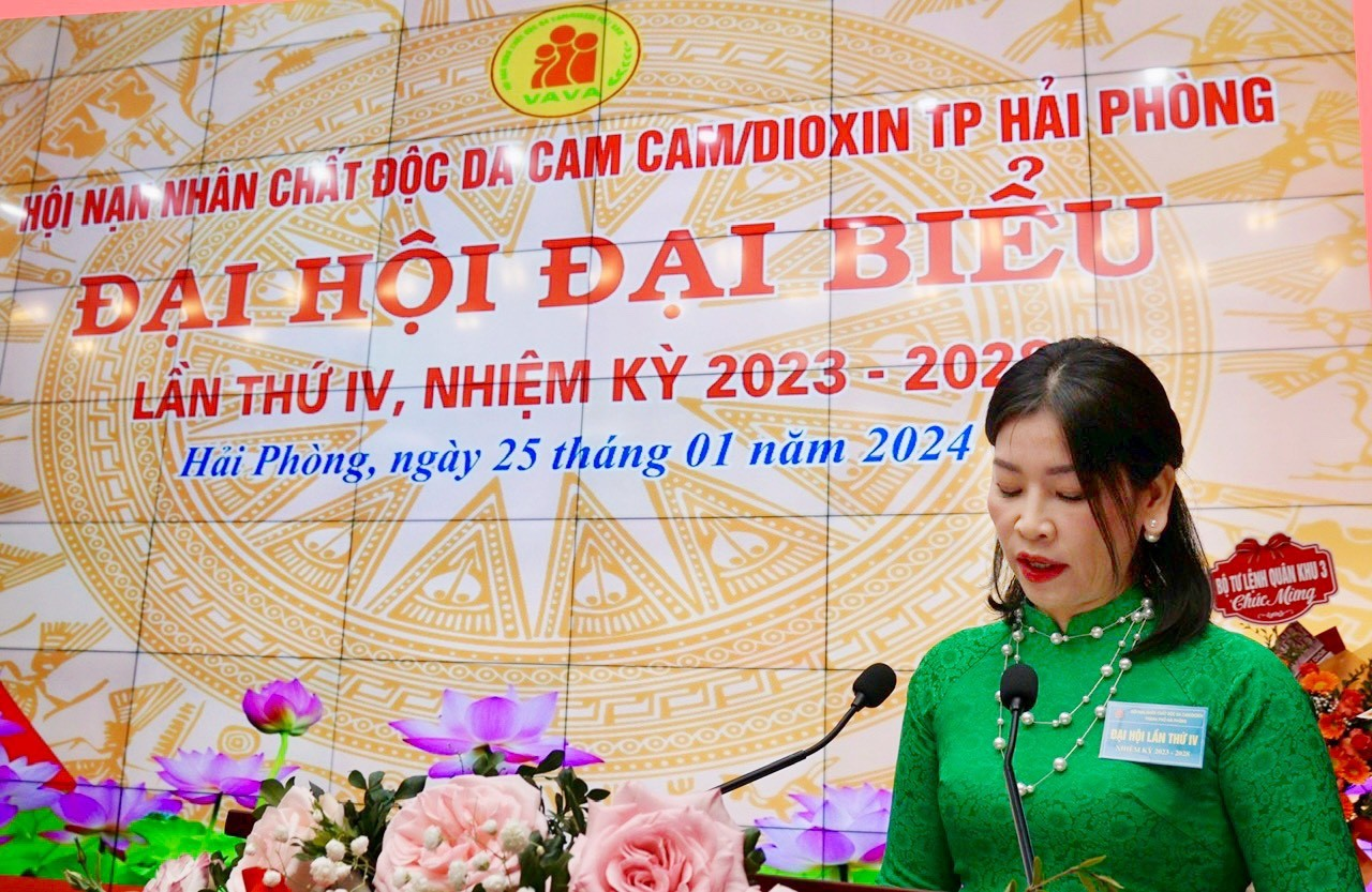 Bà Hà Thị Lan Anh phát biểu tham luận tại Đại hội Hội NNCĐDC/dioxin thành phố Hải Phòng, lần thứ IV, nhiệm kỳ 2023-2028