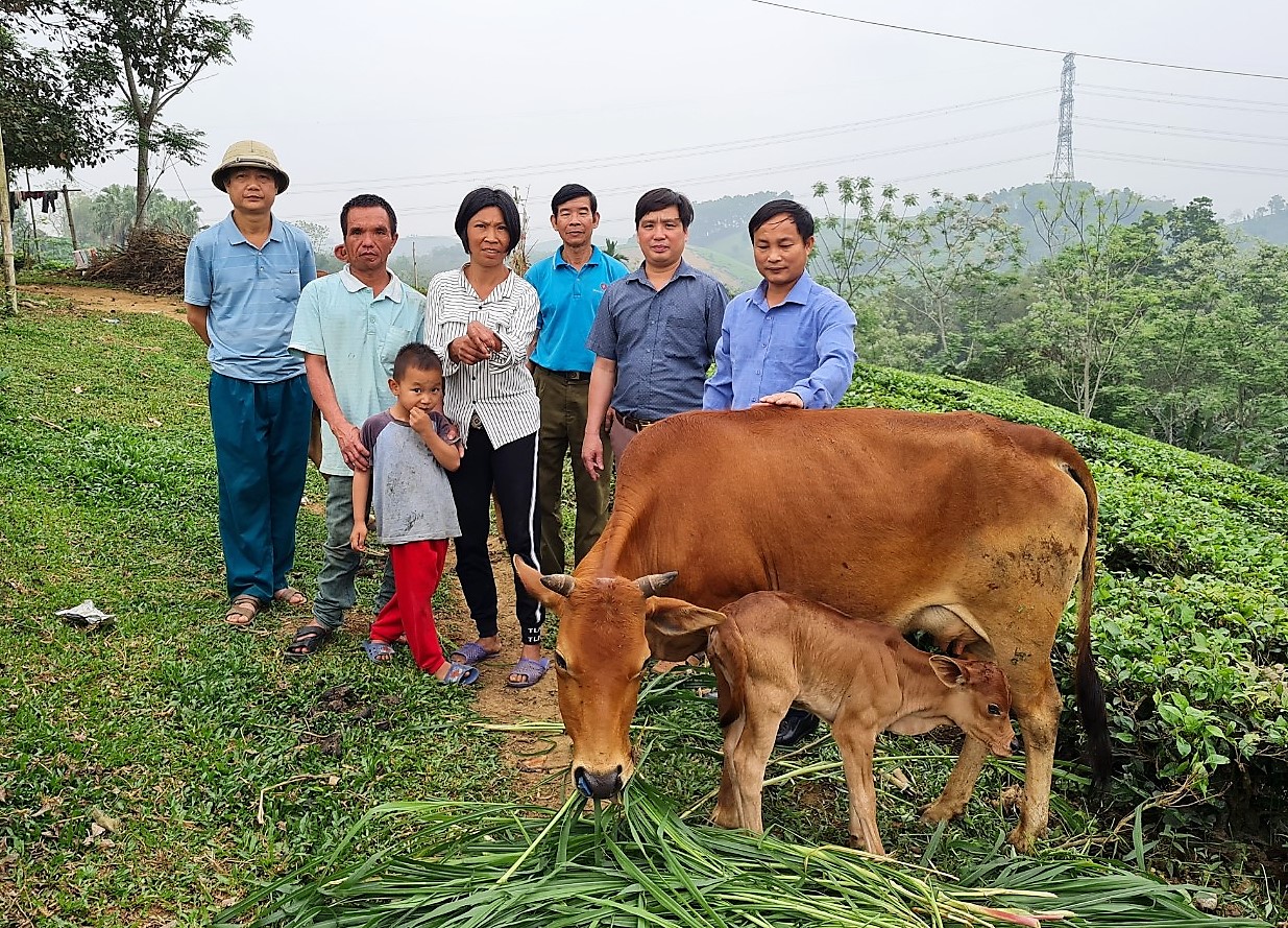 Được hỗ trợ bò giống, gia đình anh chị Hà Quang Huyện - Trần Thị Bưởi ở xã Mỹ Thuận cũng đã thoát nghèo từ chăn nuôi bò sinh sản.