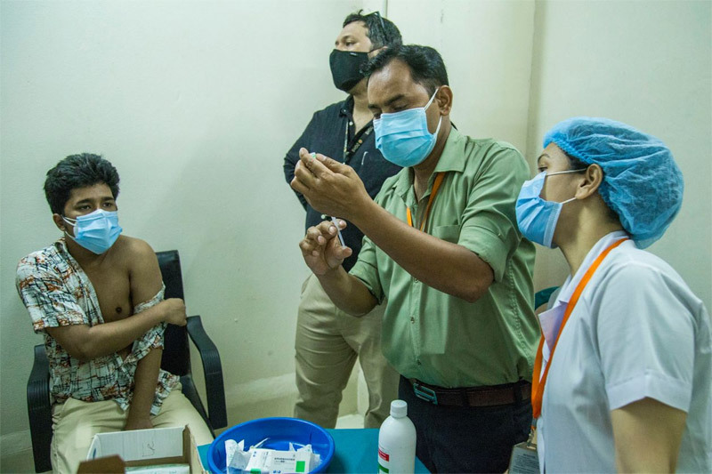 Tiêm vắc xin ngừa Covid-19 ở Dhaka, Bangladesh. Ảnh: Zuma Press