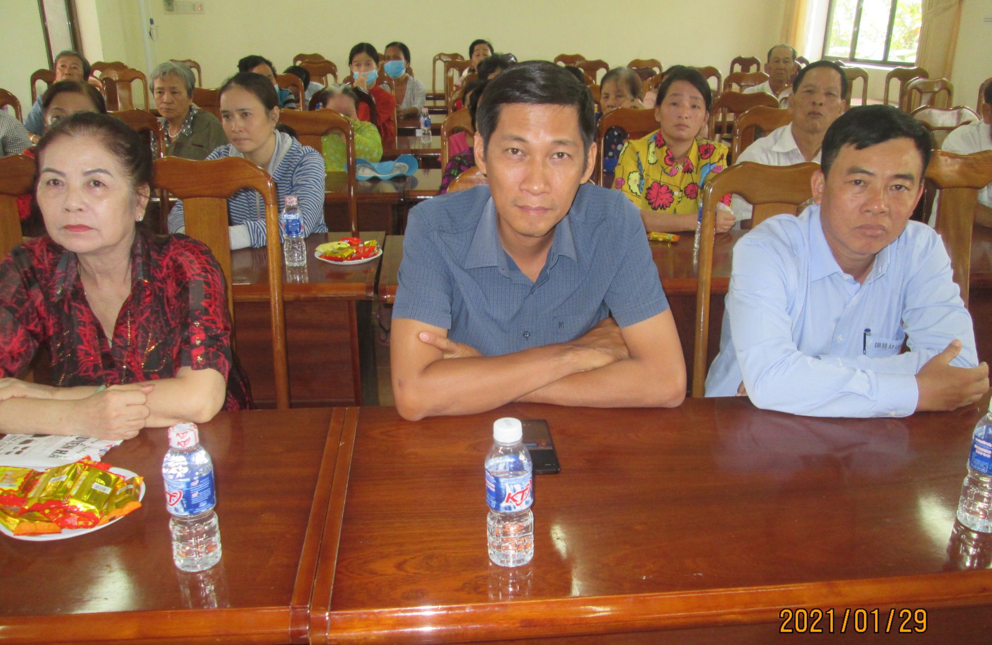 Ông Ngô Chí Hiếu, HUV, Bí thư Đảng ủy TT Năm Căn (người ngồi giữa), ông Nguyễn Văn Mến, Phó trưởng Phòng Lao động – Thương binh &XH huyện (bìa phải) dự họp mặt.