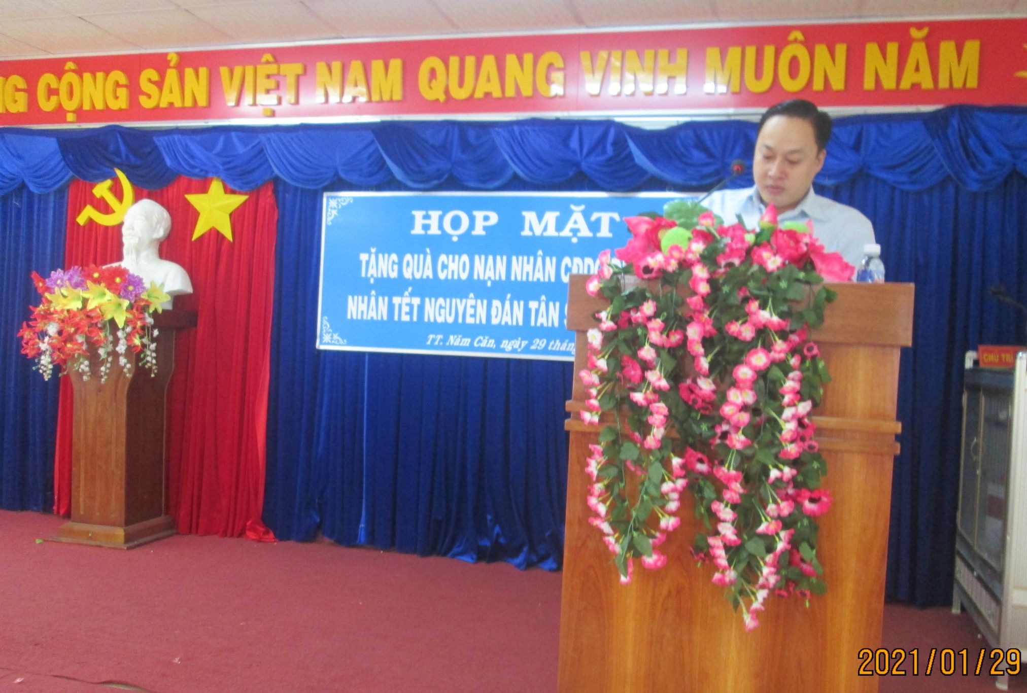 Thực hiện “Tết vì người nghèo và nạn nhân chất độc da cam”, chiều ngày 29/01/2021, UBND thị trấn Năm Căn, huyện Năm Căn, Cà Mau, tổ chức gặp mặt nạn nhân và gia đình NNCĐDC trên địa bàn thị trấn nhân dịp tết Nguyên đán Tân Sửu. Tới dự có đại diện Phòng Lao động – Thương binh và Xã hội, Hội NNCĐDC/dioxin huyện; ông Nguyễn Chí Hiếu, Huyện ủy viên, Bí thư Đảng ủy thị trấn Năm Căn; ông Nguyễn Triều Ấm, UVBTV Đảng ủy, Phó Chủ tịch UBND cùng đại biểu đại diện các ngành, đoàn thể, hội đặc thù, Ban Chấp hành Hội thị trấn Năm Căn, Chi hội trưởng các chi Hội NNCĐDC/dioxin trên địa bàn thị trấn cùng với gần 40 nạn nhân và gia đình nạn nhân đến dự (Hội NNCĐDC/dioxin tỉnh Cà Mau, huyện Năm Căn và Hội thị trấn tặng quà 26 nạn nhân với tổng số tiền gần 9 triệu đồng).