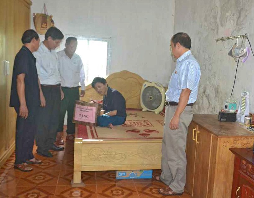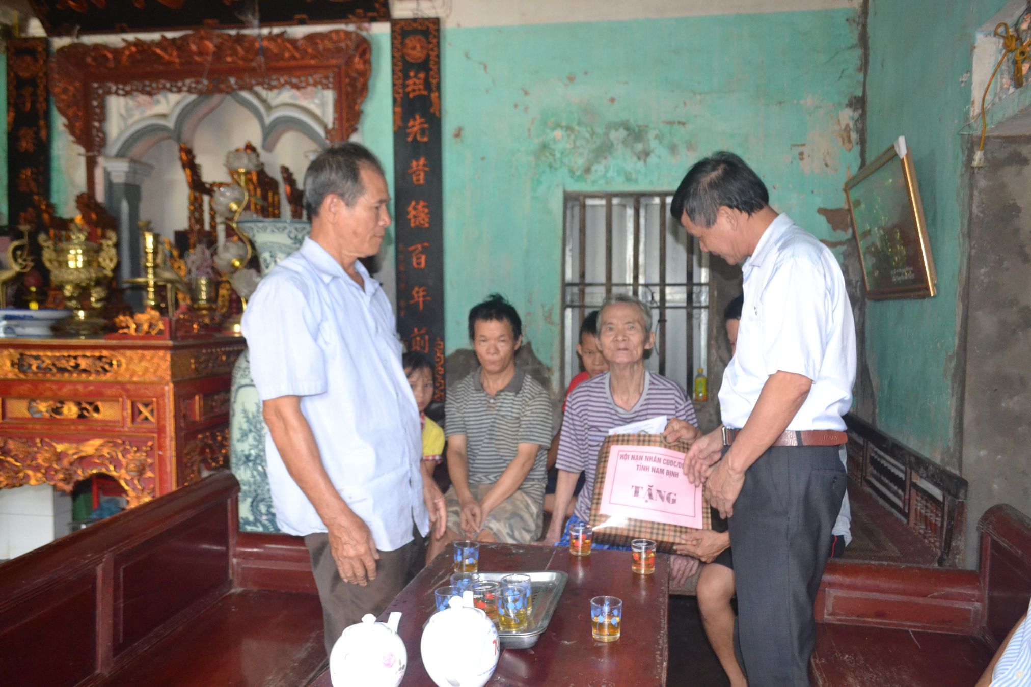 Đoàn đã đến thăm và tặng quà gia đình ông Lê Ngọc Tặng, sinh năm 1940, xóm 5, xã Yên Nhân, huyện Ý Yên. Năm 1972 ông đã trực tiếp chiến đấu ở chiến trường Quảng Trị, bản thân là thương binh hạng 2/4, là NNCĐDC. Nay ông tuổi cao, sức yếu, luôn ốm đau; ông có 2 con (Lê Văn Hinh và Lê Văn Hiến) bị thần kinh phân liệt do di chứng chất độc hóa học, kinh tế gia đình đặc biệt khó khăn, thu nhập không có gì ngoài thu nhập làm nông nghiệp của người con dâu.