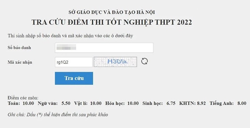 | Các thí sinh có thể tra cứu điểm thi của mình trên Cổng thông tin điện tử. (Ảnh: Chụp màn hình Cổng TTĐT) |