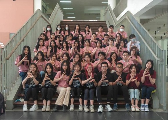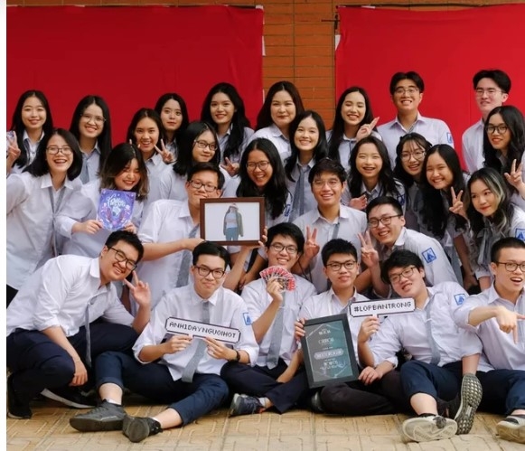 | Nhật Minh và các bạn lớp 12 chuyên Anh trường THPT chuyên Hà Nội - Amsterdam. |