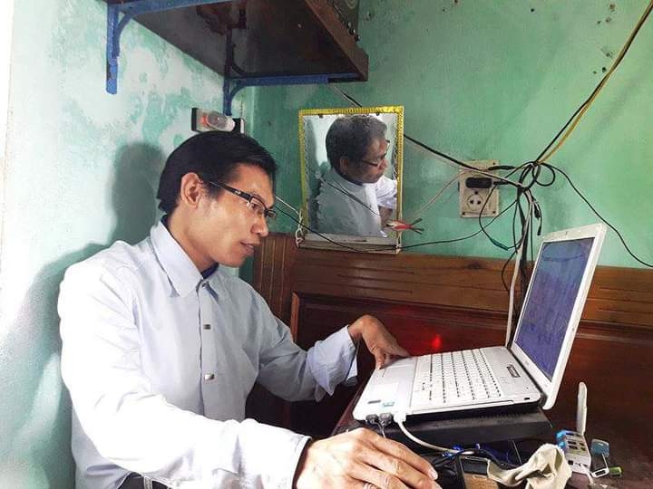 | Nhớ nhà nhưng anh chỉ gọi nói chuyện với mẹ qua máy tính |