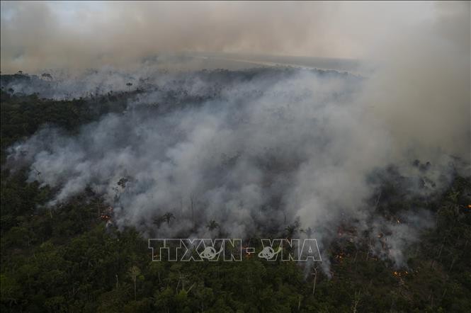 Khói bốc lên từ đám cháy rừng Amazon tại Brazil, ngày 15/9/2021.