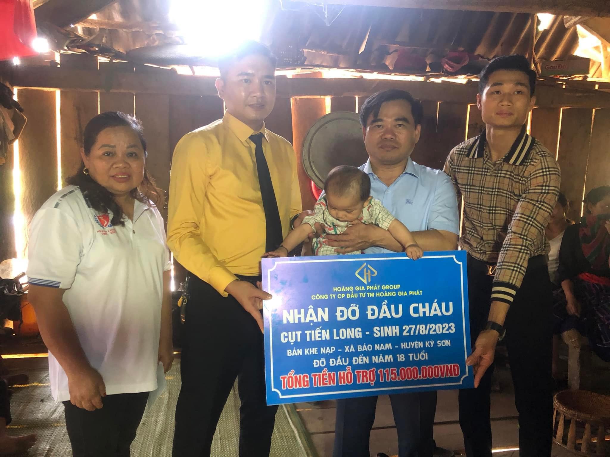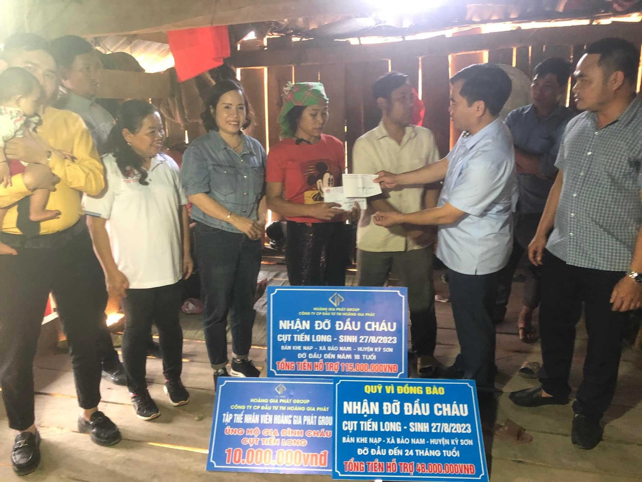 Ngay khi biết tin, ông Nguyễn Viết Hùng - Chủ tịch UBND huyện Kỳ Sơn (Nghệ An) cùng đoàn công tác và anh Hoàng Nguyễn Trọng Dũng - Giám đốc Công ty Hoàng Gia Phát (huyện Nam Đàn, Nghệ An) đã trao tặng cho gia đình nạn nhân số tiền 10 triệu đồng và Công ty nhận đỡ đầu cháu Cụt Tiến Long (7 tháng tuổi), con của vợ chồng anh Cụt Văn Sơn đến năm 18 tuổi với tổng số tiền hỗ trợ là 115 triệu đồng.