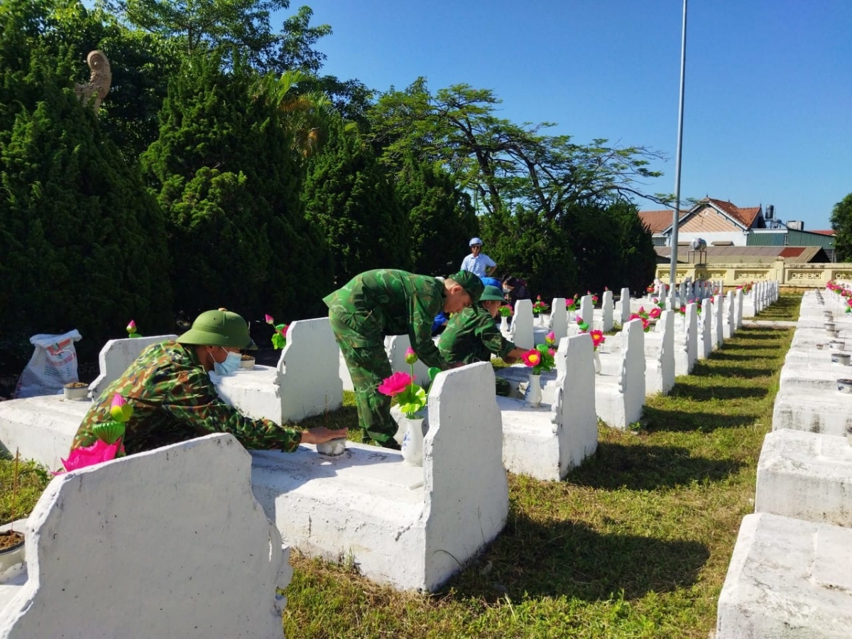 | Bộ đội BP phối hợp với các địa phương tổng dọn vệ sinh Nghĩa trang liệt sĩ và thắp hương tri ân các anh hùng, liệt sĩ |