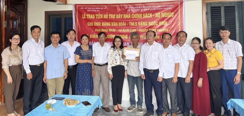 Trao tiền hỗ trợ xây nhà chính sách tại xa Xuân Lam, huyện Hưng Nguyên
