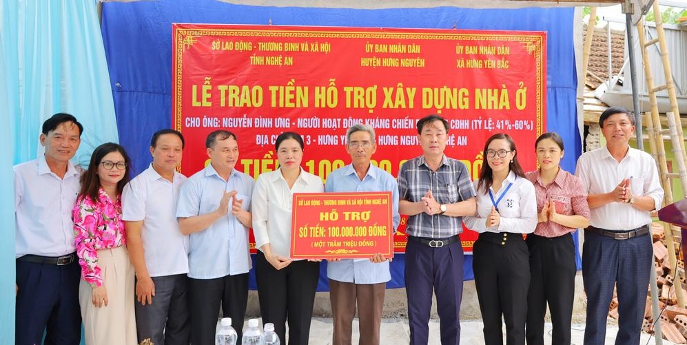 Lãnh đạo Sở LĐTBXH và huyện Hưng Nguyên trao tiền hỗ trợ xây nhà tình nghĩa tại xã Hưng Yên Bắc