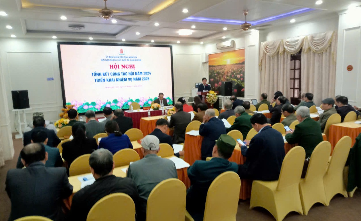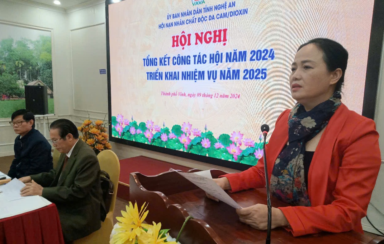 Sáng 9/12, Hội NNCĐDC/dioxin tỉnh Nghệ An tổ chức hội nghị Tổng kết hoạt động năm 2024, triển khai nhiệm vụ năm 2025, dự hội nghị có bà Trần Thị Thu Hương, Phó chủ tịch Ủy ban MTTQ tỉnh; Hội NNCĐDC/dioxin các huyện, thành và thị xã trong tỉnh.