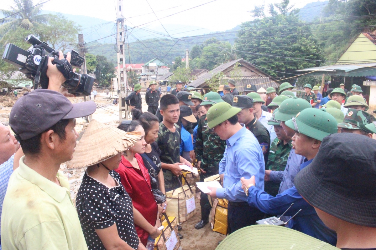 Chủ tịch UBND tỉnh Nghệ An đã trực tiếp kiểm tra những nơi bị thiệt hại nặng, thăm hỏi tặng quà, động viên các hộ gia đình bị mất nhà cửa, tài sản; mong muốn bà con cố gắng, nỗ lực vượt qua khó khăn, đoàn kết hỗ trợ nhau khắc phục hậu quả lũ lụt; bên cạnh đó tuyệt đối không được chủ quan, bất cẩn để xảy ra nguy hiểm đến tính mạng.