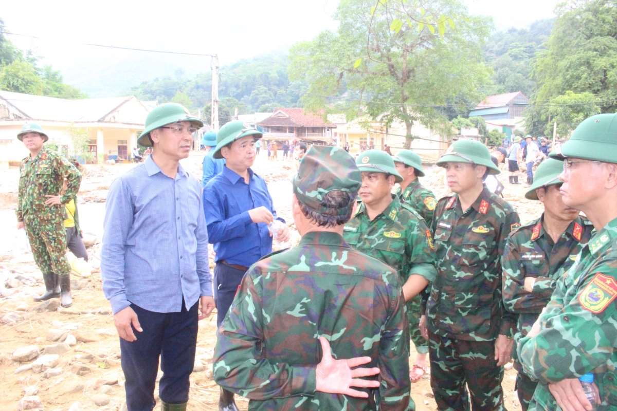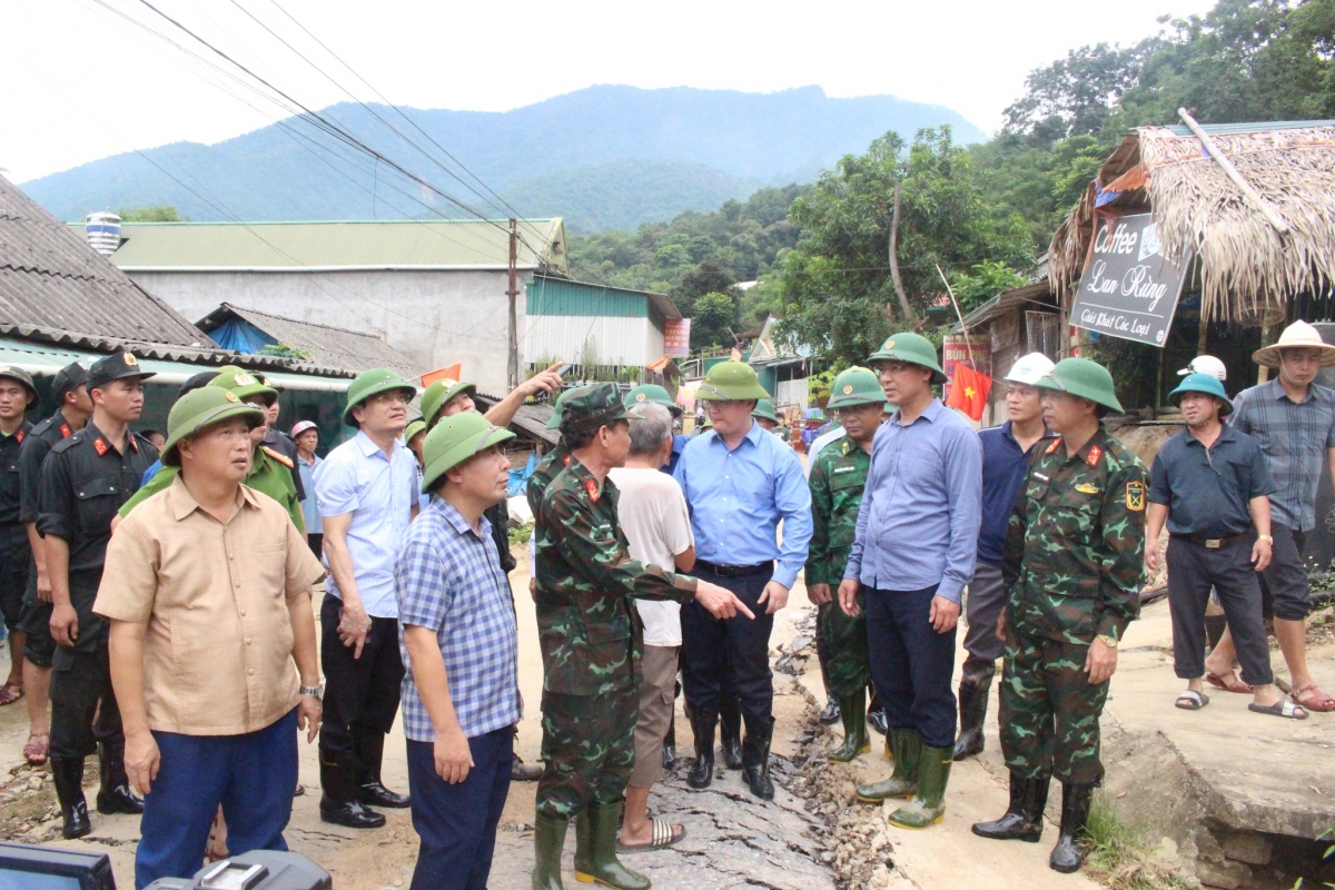Chủ tịch UBND tỉnh Nghệ An Nguyễn Đức Trung đánh giá cao công tác lãnh đạo, chỉ đạo, điều hành của cấp ủy, chính quyền địa phương huyện Kỳ Sơn, trong việc ứng phó và khắc phục hậu quả sau mưa lũ. Ghi nhận những kiến nghị, đề xuất của Bí thư Huyện ủy Kỳ Sơn; bên cạnh đó Chủ tịch tỉnh Nghệ An cũng yêu cầu lãnh đạo huyện và các ngành liên quan tiếp tục theo dõi diễn biến, cập nhật tình hình, sẵn sàng chủ động ứng phó thiên tai theo phương châm “4 tại chỗ”. Đối với những nơi có nguy cơ sạt lở cao cần phải kịp thời cảnh báo và kiên quyết di dời người dân trong trường hợp khẩn cấp, theo dõi diễn biến thời tiết để tiếp tục có những chỉ đạo kiên quyết, đảm bảo an toàn tính mạng và tài sản cho người dân.