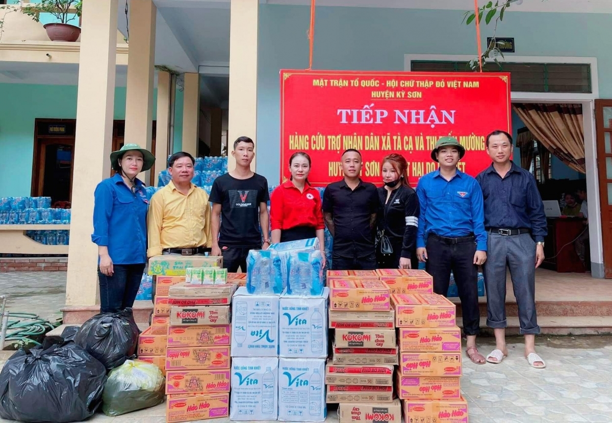 Liên tục trong những ngày này, các nhà hảo tâm, các tổ chức thiện nguyện cũng đã đến hỗ trợ trực tiếp nhu yếu phẩm cho bà con vùng lũ huyện Kỳ Sơn, Nghệ An