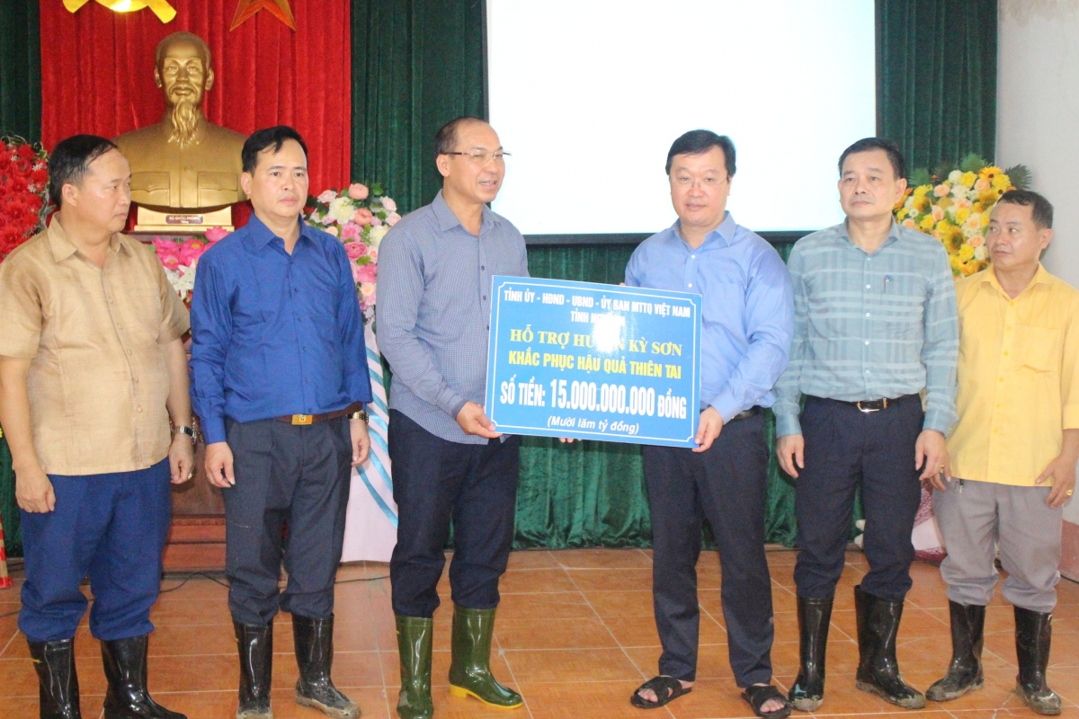 Ông Vi Hòe, Bí thư Huyện ủy Kỳ Sơn kiến nghị với tỉnh cần có các biện pháp ưu tiên thực hiện trước mắt như hỗ làm nhà tạm cho người dân, đặc biệt là các hộ dân bị sập nhà, không có nhà ở; xây dựng khu tái định cư cấp bách cho gần 200 hộ dân; hỗ trợ kè (cả 2 bên suối Huồi Giảng) để phòng tránh thiên tai tại cầu tràn qua Huồi Giảng đến nhà điện lực; hỗ trợ cầu Huồi Giảng qua Tây Sơn để đảm bảo tuyến đường thông suốt; hỗ trợ ngân sách để xây dựng các công trình, cơ sở hạ tầng khác trên địa bàn huyện Kỳ Sơn.