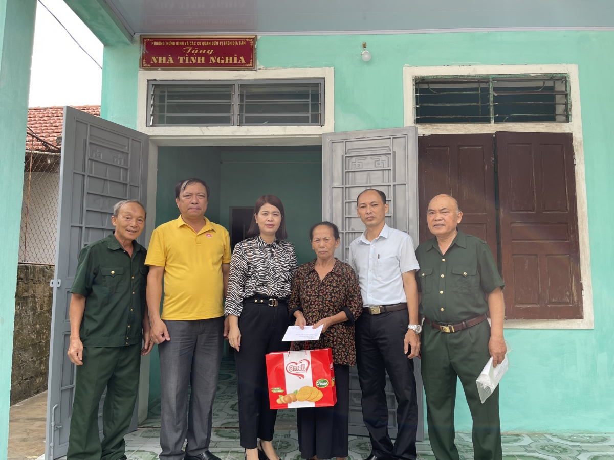 Còn ông Nguyễn Tiến Lợi cho biết, Phường Hưng Bình đã gắn các hoạt động kỉ niệm thảm họa da cam tại Việt Nam để lập thành tích chào mừng kỉ niệm 40 năm thành lập phường Hưng Bình (18/8/1982-18/8/2022) vì vậy, tập thể lãnh đạo phường coi hoạt động đền ơn đáp nghĩa là nhiệm vụ chính trị nổi bật của Phường. Dịp này, Bà Hoàng Thị Thanh Loan bí thư Đảng ủy Phường, ông Nguyễn Thanh Nam PBT, ông Hồ Viết Sơn Chủ tịch MTTQ, cùng các Phó chủ tịch Phường, Hội phụ nữ, Đoàn thanh niên, cán bộ chính sách Phường và 2 Phó chủ tịch Hội NNCĐDC của phường đã trực tiếp tặng 11 suất quà cho các gia đình nạn nhân có hoàn cảnh đặc biệt khó khăn, mỗi suất 400 ngàn và một túi hiện vật. Toàn phường Hưng Bình hiện có 52 nạn nhân trực tiếp, 14 nạn nhân gián tiếp, nếu nói về kinh tế thì có đỡ hơn nhưng về bệnh tật di chứng thì các nạn nhân đều nặng hơn so với ở các phường khác; có 5 gia đình từ 2 đến 3 nạn nhân. Cũng dịp này, Phường Hưng Bình tặng quà, bàn giao ngôi nhà tình nghĩa cho gia đình ông Nguyễn Khoa Á, NNCĐDC nằm liệt giường, có 2 con là nạn nhân gián tiếp, vợ là thương binh cựu TNXP, ở số nhà 151 Văn Đức Giai, Khối Trường Tiến, phường Hưng Bình.
