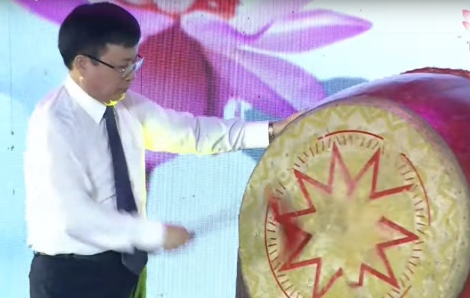 Ông Bùi Đình Long, Phó chủ tịch UBND tỉnh Nghệ An đánh trống khai hội