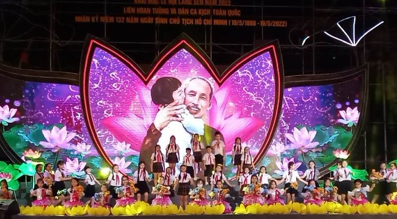 Trước giờ khai mạc, Ban Tổ chức Lễ hội Làng Sen 2022 long trọng Lễ dâng hoa, dâng hương tưởng niệm trước Tượng đài Bác Hồ tại Quảng trường Hồ Chí Minh (TP. Vinh) và Nhà tưởng niệm tại Khu di tích Quốc gia đặc biệt Kim Liên và Đền Chung Sơn (Nam Đàn). Dự lễ có các ông: Tạ Quang Đông - Thứ trưởng Bộ Văn hóa - Thể thao và Du lịch; Đại tá Phạm Hiếu - Phó Chính ủy Bộ Tư lệnh Bảo vệ lăng Chủ tịch Hồ Chí Minh.