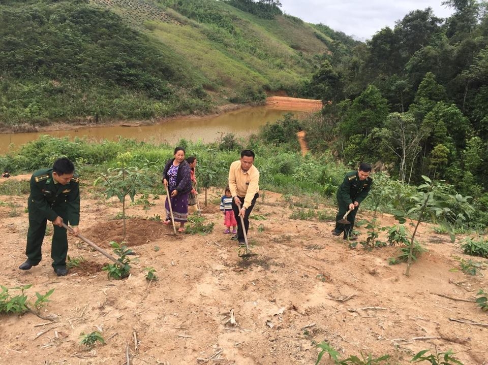 | Bộ đội Biên phòng Nghệ An giúp bà con bản Tangsao, huyện Muangquane, tỉnh Huaphanh, phát triển vườn đồi |