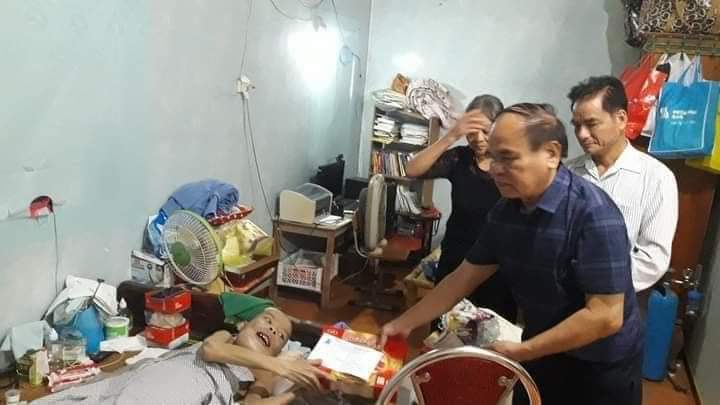 Ông Tạ Quang Dư, Chủ tịch Hội tp Vinh và thương binh Nguyễn Viết Phượng thường trích tiền lương thăm hỏi NNCĐDC