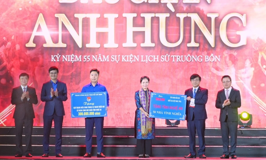 Dịp này, Ban Tổ chức đã trao tặng 14 sổ tiết kiệm tới thân nhân 13 liệt sĩ và bà Trần Thị Thông - nhân chứng lịch sử; Tập đoàn Dầu khí Quốc gia Việt Nam trao tặng tỉnh Nghệ An 50 căn nhà tình nghĩa, trị giá 2,5 tỷ đồng; Ban Bí thư Đoàn TNCS Hồ Chí Minh trao tặng cựu thanh niên xung phong và thanh, thiếu niên có hoàn cảnh khó khăn tỉnh Nghệ An 300 triệu đồng.