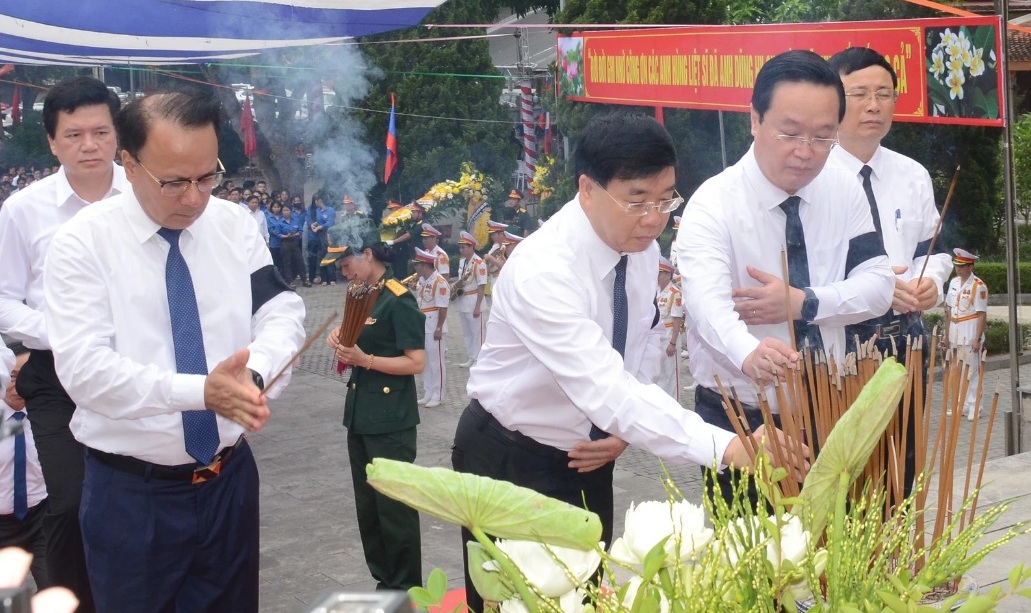 Các đại biểu Việt Nam và Lào kính cẩn dâng hương các liệt sĩ