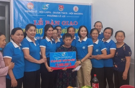 Các đoàn thể phường Lê Lợi trao tiền xây nhà tình nghĩa cho bà Hợi