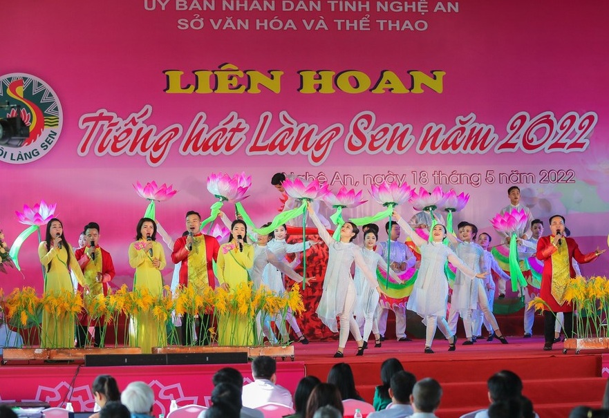 Cụ thể, Liên hoan Tiếng hát Làng Sen tổ chức từ ngày 18 – 19/5/2022 tại Khu Di tích Quốc gia đặc biệt Kim Liên với sự tham gia của hơn 500 diễn viên, gần 100 tiết mục đến từ 19 đoàn nghệ thuật quần chúng. Sau 2 ngày diễn ra sôi nổi, Liên hoan đã thành công tốt đẹp với các tiết mục đều tập trung chủ đề ca ngợi Đảng, Chủ tịch Hồ Chí Minh và ca ngợi quê hương, đất nước quyết tâm tiến bước trên con đường mà Đảng, Bác Hồ đã lựa chọn.