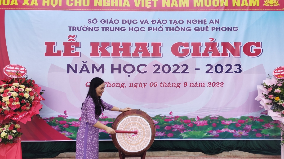 | Hiệu trưởng THPT Quế Phong đánh trống khai trường |