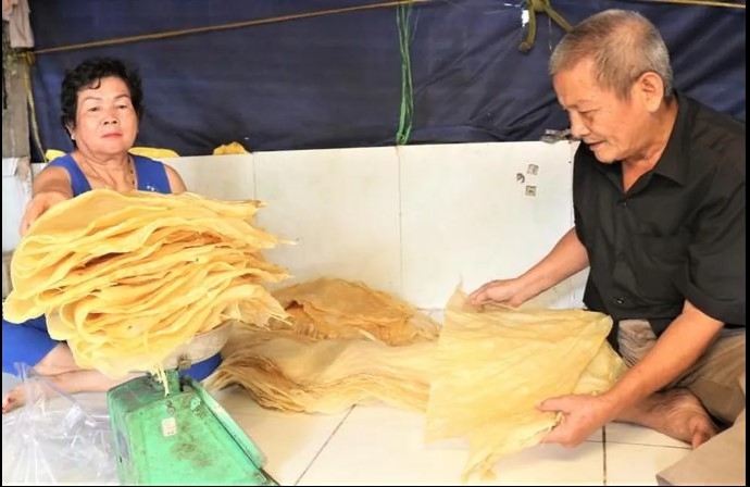 "Làm nghề này rất vất vả, mỗi ca là 1 ngày đêm. Thợ phải thức canh lò suốt vì độ nóng của lò chỉ được duy trì khoảng 70 độ C thì nước cốt đậu nành trong chảo mới hình thành lớp váng. Cứ khoảng 10 phút, mặt chảo lại nổi váng 1 lần và phải dùng dao rạch rồi treo lên sào cho ráo" - bà Hà giải thích.
