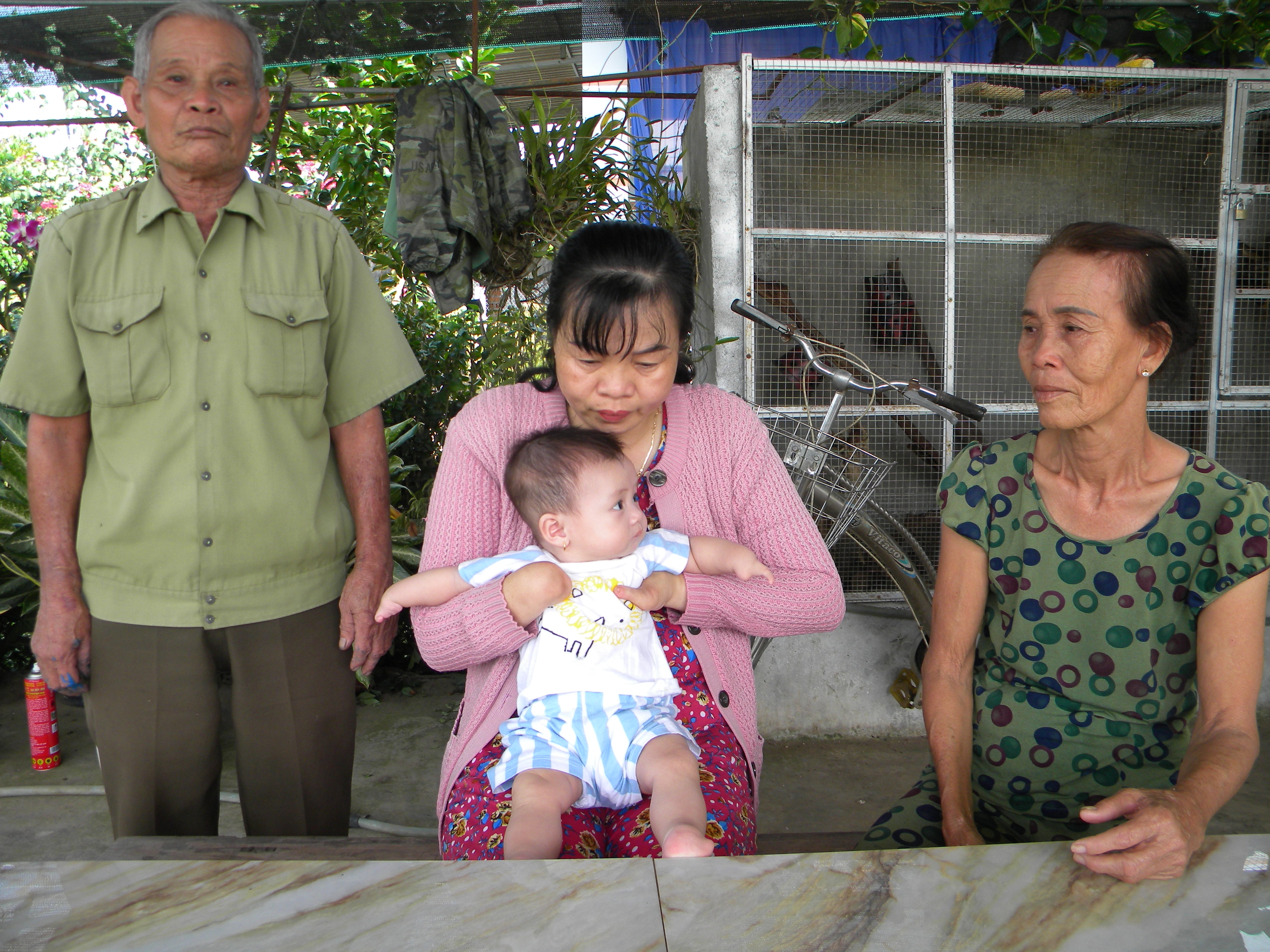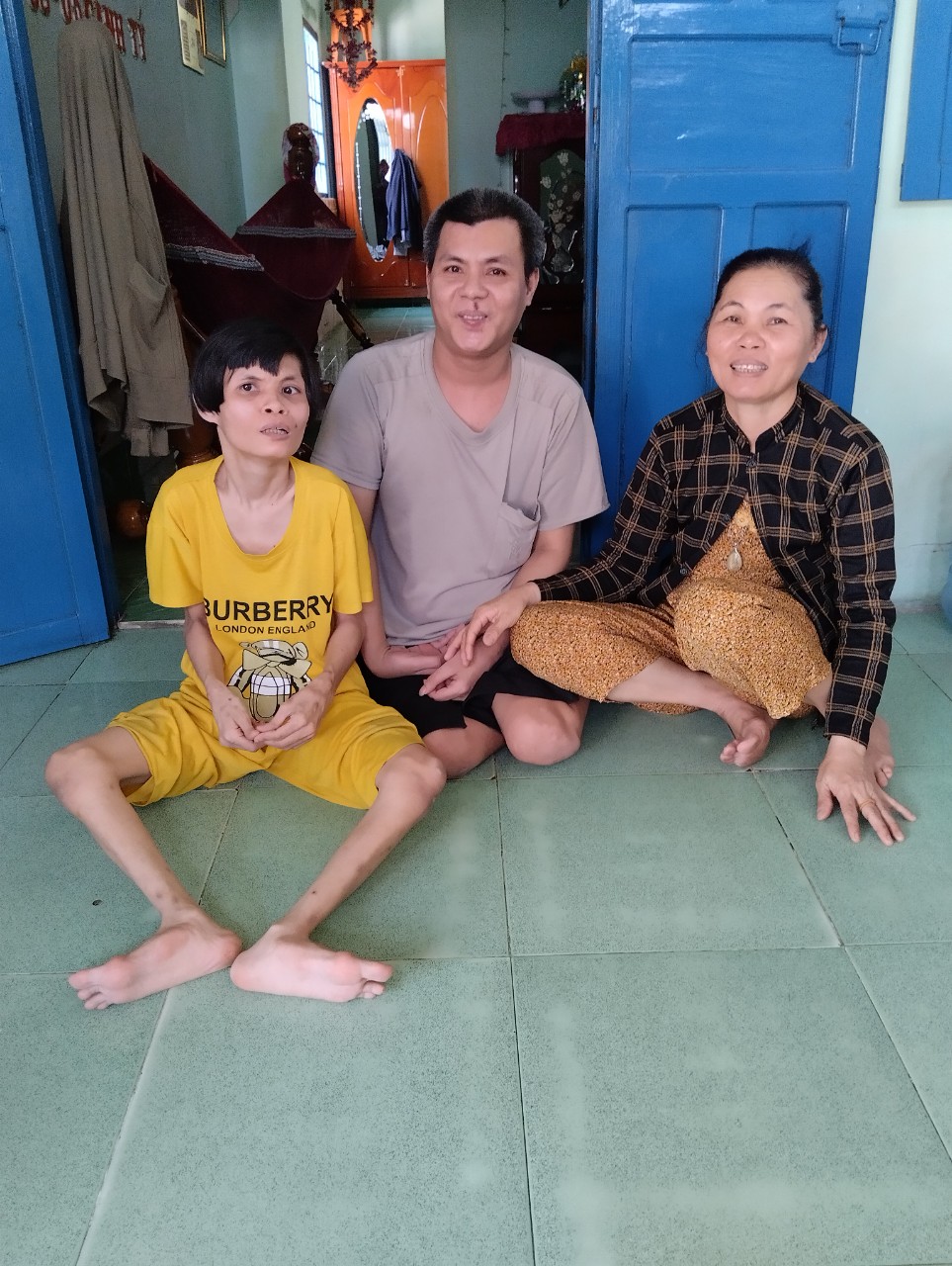 Đến với gia đình bà Hoàng Thị Thuận, sinh năm 1950; bà cùng chồng, ông Nguyễn Văn Bốn (1949), là chiến sỹ 81 ngày đêm bảo vệ Thành cổ Quảng Trị, quê huyện Hưng Hà, tỉnh Thái Bình vào thôn 1 (xã kinh tế mới) Tân Hà, huyện Đức Linh, tỉnh Bình Thuận từ năm 1989. Hiện bản thân ông là nạn nhân chất độc gia cam 41%, ông bà sinh ra 5 người con; 3 gái, 2 trai; riêng cháu trai đầu Nguyễn Bình Minh (1972), bị dị dạng từ trong bụng mẹ; cháu trai út sinh ra thần kinh cũng không bình thường. Bà kể chuyện mà nước mắt dầm dề: “ Sinh ra cháu chỉ hơn một kg, suốt 2 năm đầu, đêm nào cháu cũng khóc, không ngủ, vợ chồng tôi thay nhau thức cùng con”. Hiện cháu hơn 50 tuổi, chỉ nặng khoảng 20 kg, người tròn vo, với đôi mắt sáng, chân, tay co quắp, cao chưa đầy nửa mét. Trao đổi với tôi, ông Vũ Tiến Lập, CCB xã kể: “Vợ chồng ông bà đã già, giờ phải nuôi 2 cháu tật nguyền, riêng cháu Thanh Minh đã trên 50 năm, chỉ một tay mẹ ngoài ra không ai nuôi được”?