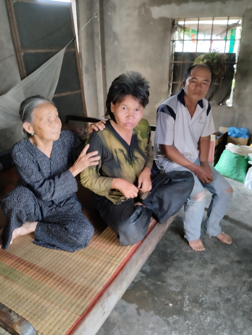 Chị Nguyễn Thị Hoa, Chủ tịch hội NNCĐDC/dioxin thị trấn Chợ Lầu, huyện Bắc Bình nói: “Cuộc sống của 3 mẹ con chị Thủy, mấy chục năm nay phải nhờ sự giúp đỡ của gia đình, xã hội và địa phương: xây nhà mái ấm tình thương; cho gạo; tiền; nhu yếu phẩm sinh hoạt; cháu ốm đau phải nhờ y, bác sỹ chăm nom miễn phí. Hiện 2 cháu được trợ cấp 720.000 đồng/cháu/tháng; chị Thủy được 360.000 đồng/tháng (nuôi con).
