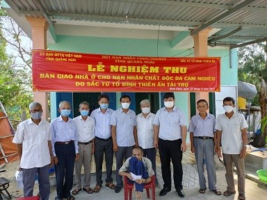Sáng 22/6/2021 Hội NNCĐDC/dioxin tỉnh Quảng Ngãi phối hợp với Ủy ban MTTQVN tỉnh tổ chức nghiệm thu, bàn giao đưa vào sử dụng nhà tình thương cho ông Võ Đỉnh ở thôn Châu Me, xã Bình Châu, huyện Bình Sơn, ông là NNCĐDC, hộ nghèo, có hoản cảnh đặc biệt khó khăn.