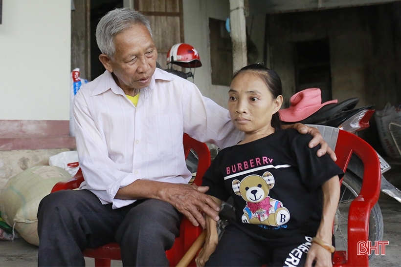 | Ông Thành chăm sóc con gái bị nhiễm chất độc da cam. |