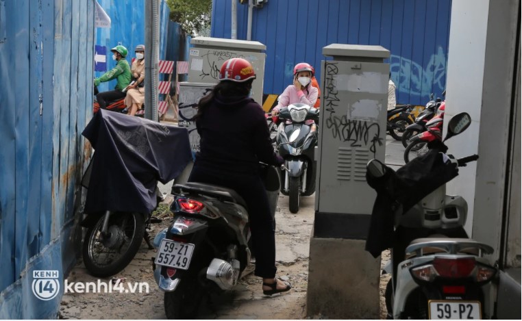 Do buôn bán khó khăn vì bị rào chắn suốt 8 năm qua, chị Oanh và người thân tranh thủ bán cơm văn phòng mang đi và nhận giữ xe cho các công nhân tại công trình Metro