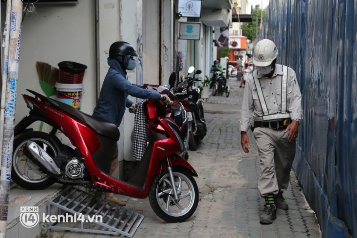 Mỗi lần người dân đưa xe máy ra ngoài cũng gặp không ít khó khăn do rào chắn công trình