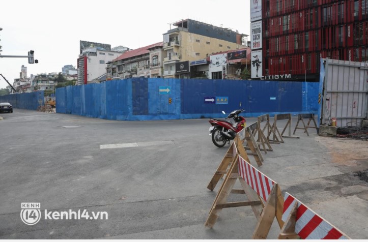 Hiện tại một đoạn ngắn rào chắn trên đường Lê Lợi đã tháo dỡ để công nhân thuận tiện vào thi công tái lập mặt bằng