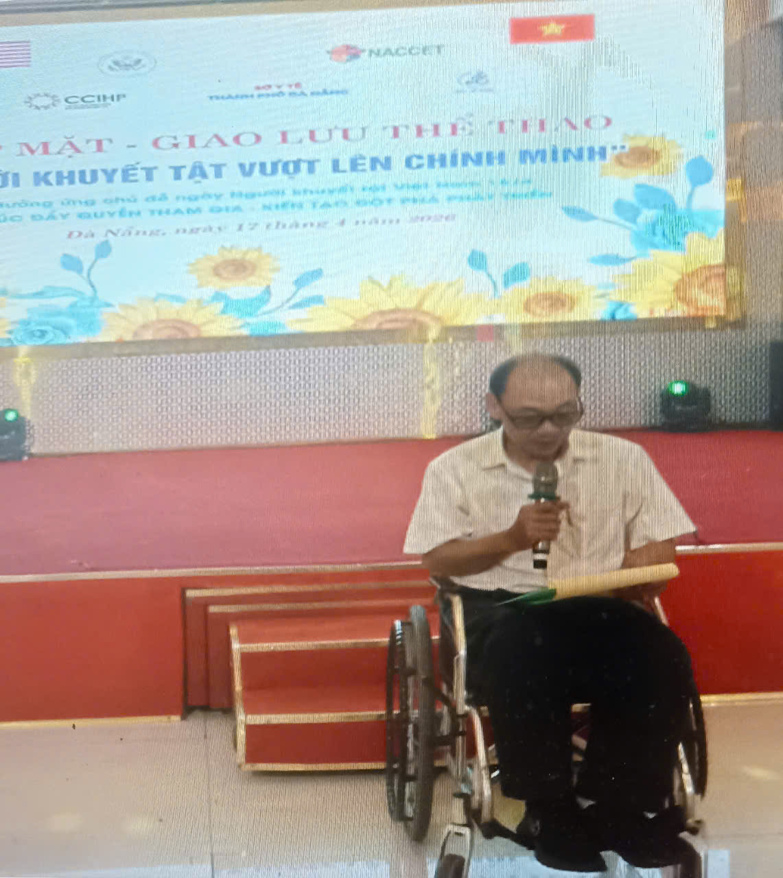 Ông Trương Công Nghiêm, Chủ tịch Hội Người khuyết tật thành phố phát biểu tại buổi gặp mặt kỷ niệm Ngày Người khuyết tật Việt Nam (18/4)