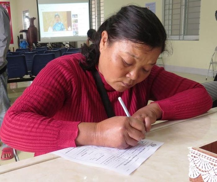 | Chị Dung làm thủ tục hiến máu tại Trung tâm Huyết học - Truyền máu Nghệ An. |