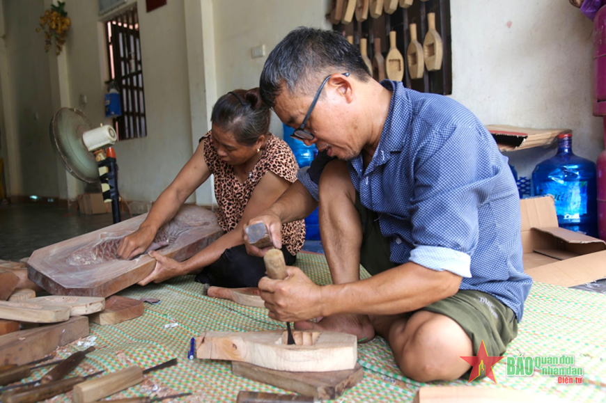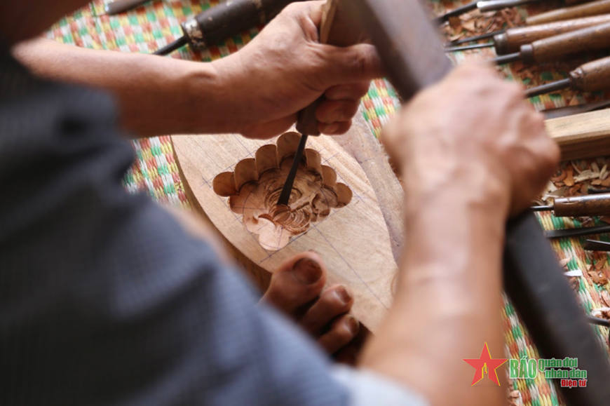 Đôi bàn tay thoăn thoắt tay dùi, tay đục, xung quanh ông là cả trăm loại đục đủ kích cỡ khác nhau, ông tâm sự: “Giữ được lửa hồn của cái nghề đã khó, thổi hồn vào chúng lại càng đòi hỏi người thợ phải là một nghệ nhân tài ba. Mỗi tác phẩm hoàn thiện phải có hồn, chắc chắn nhưng phải đẹp, tỉ mỉ sắc nét từng chi tiết”.