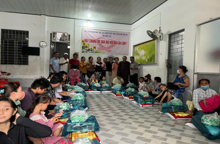 Với tấm lòng thiện nguyện nhằm chia sẻ, giúp đỡ nạn nhân chất độc da cam của tỉnh Bến Tre, vừa qua Đại đức Thích Xuân Trí, Phó trưởng Ban Từ thiện xã hội Phật giáo tỉnh Bến Tre - Trưởng ban Từ thiện xã hội Phật giáo huyện Châu Thành, tỉnh Bến Tre kết nối với nhà hảo tâm ở Chợ Mới tỉnh An Giang đã đến Nhà nuôi dưỡng trẻ em nhiễm chất độc hóa học tỉnh Bến Tre ở xã Phú Đức, huyện Châu Thành thăm hỏi và tặng 26 suất quà cho trẻ em là nạn nhân chất độc da cam và trẻ em mồ côi đang sống tại Nhà nuôi dưỡng; mỗi suất quà gồm: gạo, mì tôm, sữa, nhu yếu phẩm, trị giá 400.000 đồng, tổng số tiền là 10.400.000 đồng.