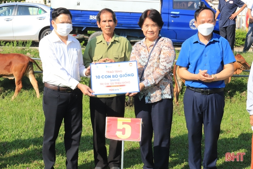 | và trao biểu trưng 10 con bò giống trị giá 120 triệu đồng cho 10 hộ nghèo, nạn nhân chất độc da cam... |