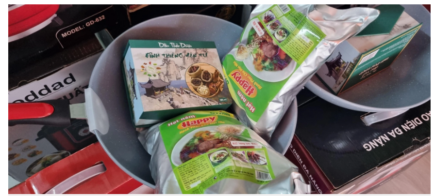 Bà Ngô Thị Hoài (phường Thanh Khê Tây, quận Thanh Khê) cho hay, một tuần trước, bà được một nhóm người tới nhà mời ra nhà hàng tiệc cưới trải nghiệm sản phẩm, nhận quà. Để lấy lòng tin, nhóm người này tặng cho bà một gói bột giặt 400.000 đồng và một gói bột nêm 200.000 đồng.