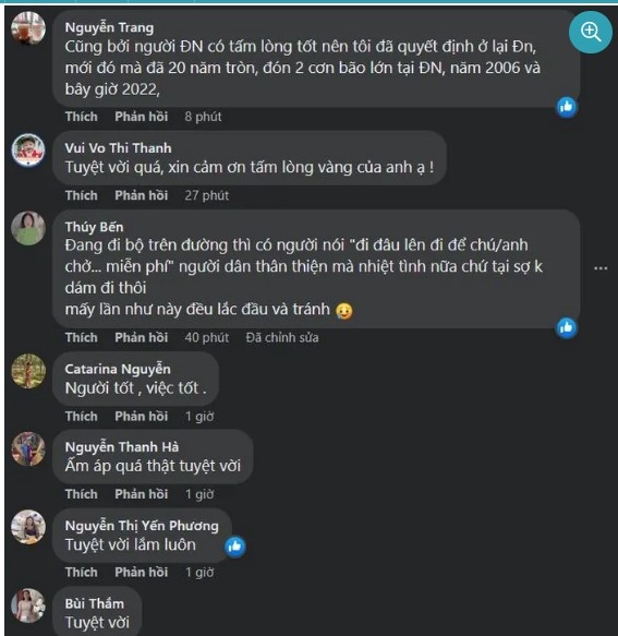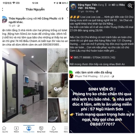| Hàng loạt bài đăng "ấm lòng ngày bão" tại Đà Nẵng trên MXH Facebook. |